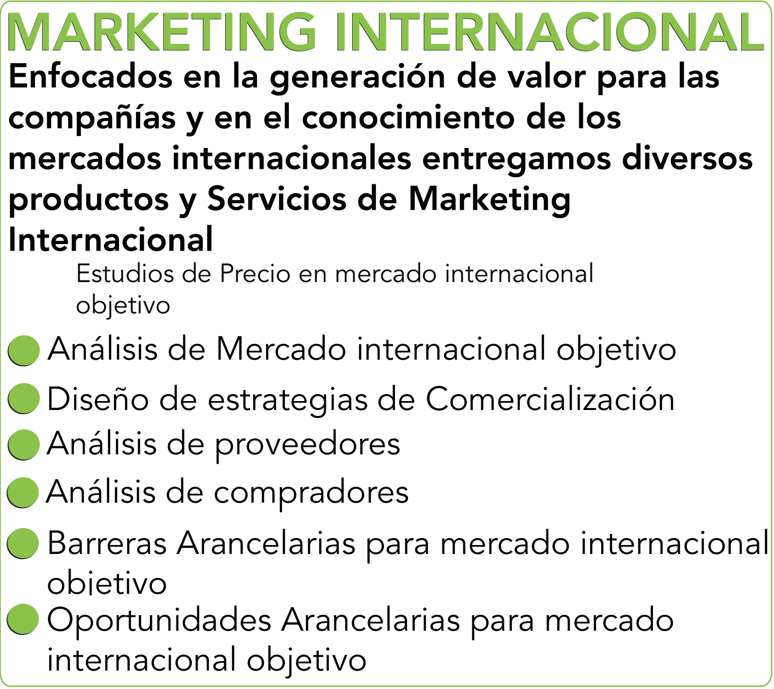 Con el fin de abordar las diferentes necesidades de diferentes personas, ofrecemos una amplia gama de servicios para nuestros clientes. Puede contactarnos para servicios de transporte internacional, soluciones de marketing global, asesoramiento legal, servicios de importación, servicios de exportación y muchos más. Nuestro dedicado equipo de expertos realiza cada tarea de la manera más eficiente para cumplir con sus expectativas exactas