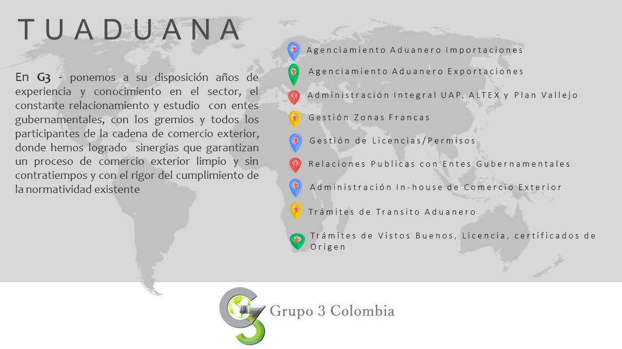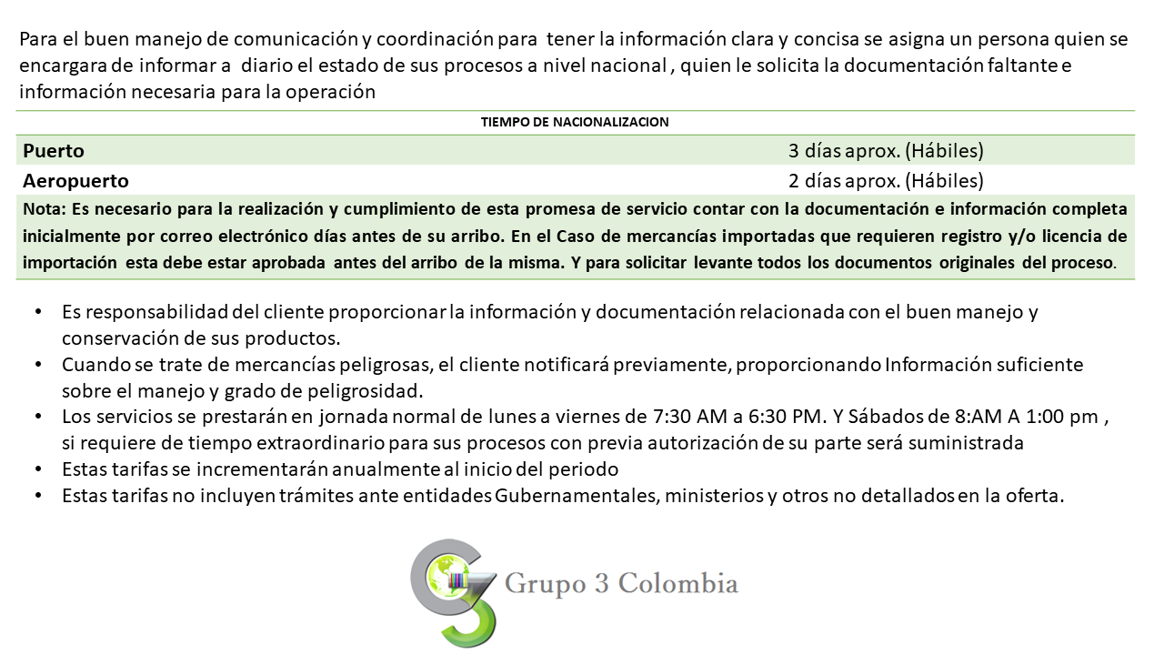 No importa si desea hacer exportaciones en Colombia o importaciones en Colombia o cualquier otro tipo de operaciones logísticas sin preocuparse por el tiempo, la seguridad y el precio; puedes contactar a Grupo 3 Colombia. Como operador logístico colombiano de gran reputación y prestigio, nos ocupamos de las necesidades de los clientes con la máxima responsabilidad.